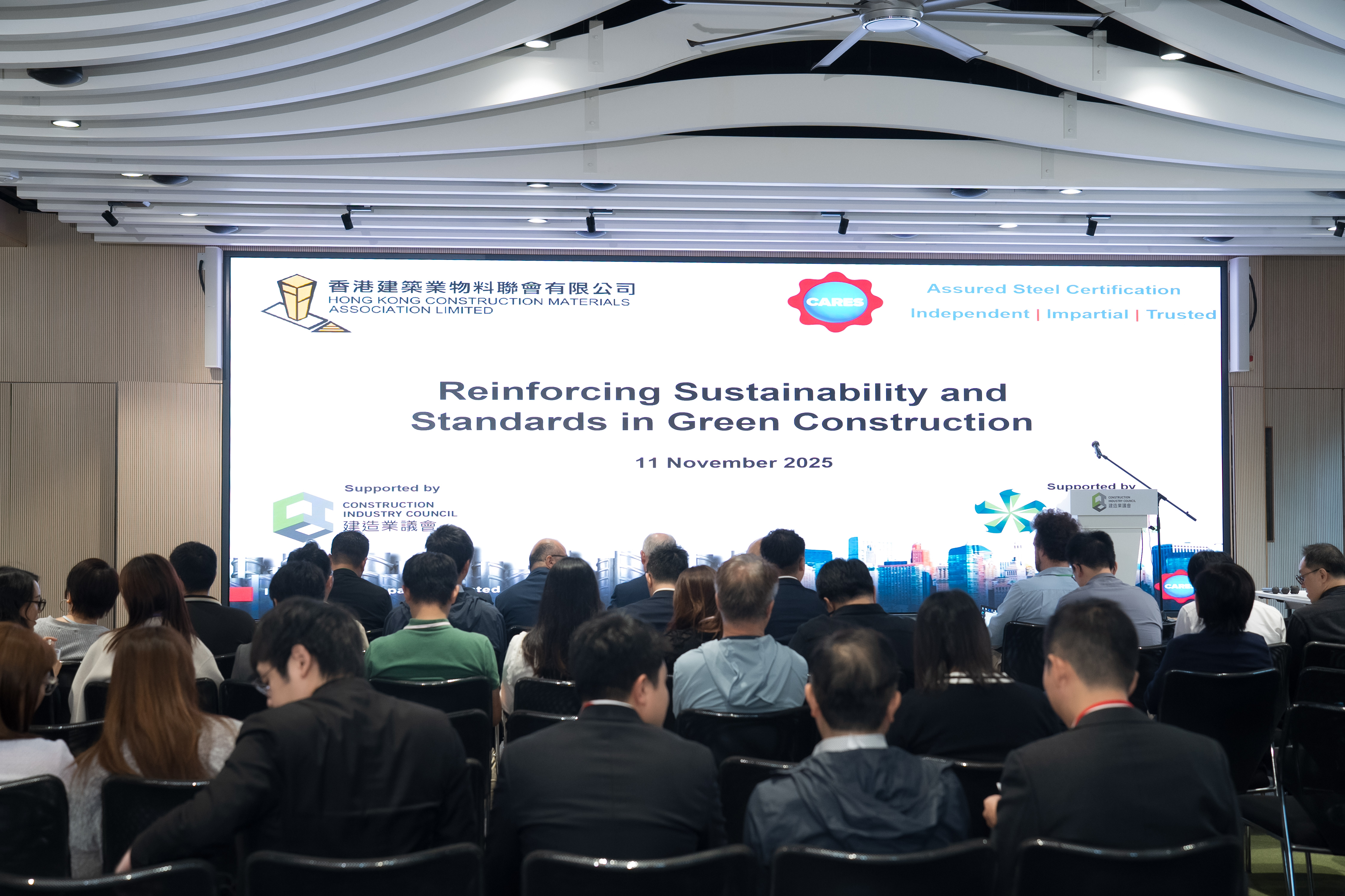 | Content: | Co-organized by the Hong Kong Construction Materials Association (HKCMA) and CARES We are pleased to announce the successful completion of our seminar jointly hosted by HKCMA and CARES, focusing on the vital theme of “Reinforcing Sustainability and Standards in Green Construction.” The event featured insightful presentations on Product Certification (CIC Green Product Certification) and a dynamic panel discussion with leading developers and consultants, exploring the future of Sustainable Construction in Hong Kong and the Real Estate Sector. Photo Highlights Please find below selected moments from the seminar, capturing the engaging discussions, professional exchanges, and collaborative spirit that defined the event. |